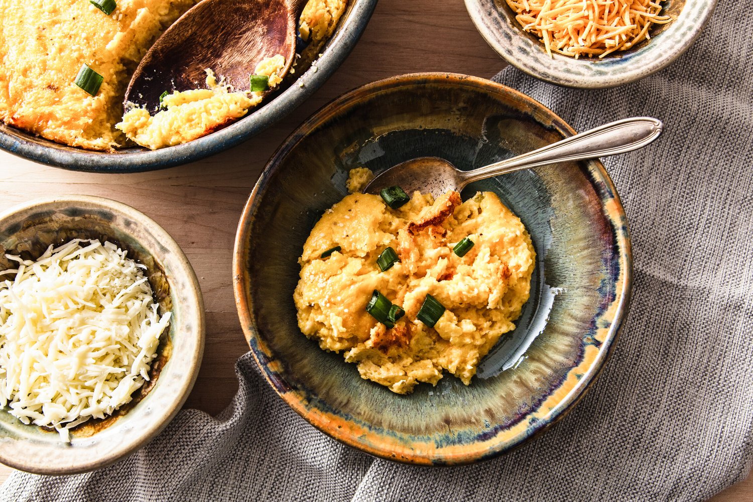 The saltiness of gouda, slight sour flavor of mozzarella, the nuttiness of parmesan and gruyere, and sharpness of cheddar blend perfectly in this side dish, making it a great addition to any brunch or dinner table. The five cheeses melt perfectly into the grits, giving it a smooth and creamy texture. This is a dish that everyone will want the recipe for!
