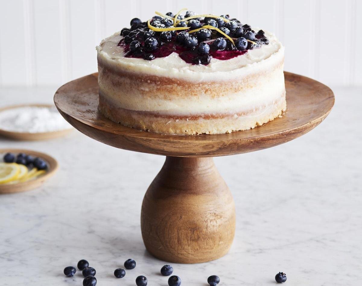 A real eye-catcher, this cake is perfect for Sunday lunches, birthdays and all the get-togethers of spring and summer. You bake the cake with The Old Mill White Unbleached Plain Flour and you assemble it with an easy lemon frosting and a jar of our Mountain Blueberry Preserves. Not only are the blueberry preserves a natural flavor partner to lemon, but preserves keep the cake moist and even more delicious.